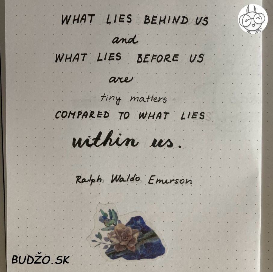 Nebol by to Bullet Journal, keby sa na niektorej zo stránok nevyskytol citát. Moje písanie je príšerné (ako vždy), ale našla som si motivačný citát, ktorý ma bude sprevádzať tento rok. Ak mám byť úprimná, citáty si takisto vôbec do svojho zápisníka nepíšem, mala som ale voľnú stránku a niečo som tam potrebovala vložiť, tak som to vybavila takto.