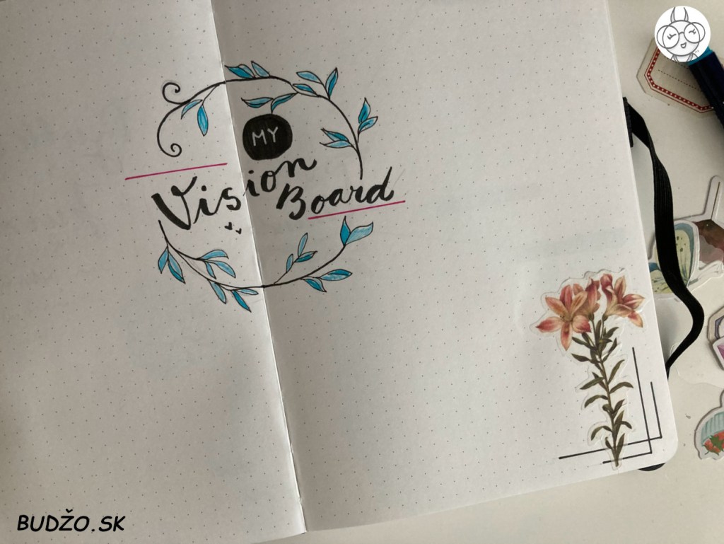 Svoju ďalšiu dvojstránku začínam nástrojom Vision Board (doslovne nástenka vízií). Nespomínam si, kedy presne som s týmto začala, no osvedčilo sa mi to a často sa pristihnem, že aj po niekoľkých mesiacoch zízam na texty a obrázky, ktoré som si tam nalepila.