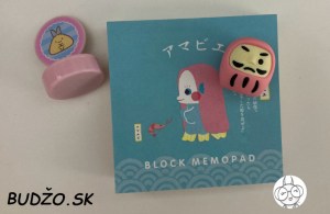 Poslednými produktami v januárovom balíčku nájdete pečiatku od značky Sumikkogurashi. Veľmi pekným doplnkom je guma na gumovanie, ktorá má tvar bábiky daruma. Táto tradičná japonská bábka je symbolom výdrže a šťastia. Má vyfarbené len jedno oko. Túto bábku totiž na začiatku dostanete s prázdnymi očami. Jedno z nich namaľujete, keď si chcete splniť nejaké želanie. Druhé oko napokon vyfarbíte v momente, keď sa vaše želanie vyplní. V januárovom boxe ste mohli nájsť z tejto bábky rôzne farby.