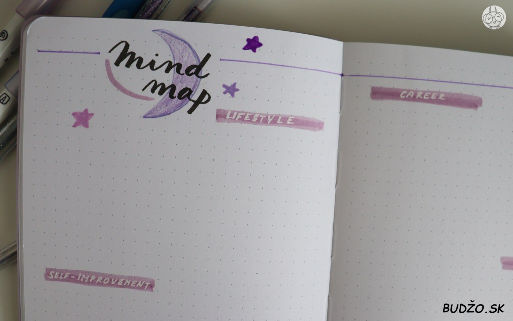 Mojimi štandardnými stránkami sú kľúč s vysvetlivkami značiek, na tomto blogu už spomínaná “nástenka vízií”, či myšlienková mapa, v ktorej si rozpisujem svoje ciele na jednotlivé oblasti a dopĺňam poznámky, ktorí mi napadnú. Tentoraz som nechala vo všeobecnej časti aj niektoré moje zoznamy, ako napríklad poradovník kníh, ktoré si chcem prečítať a pod.