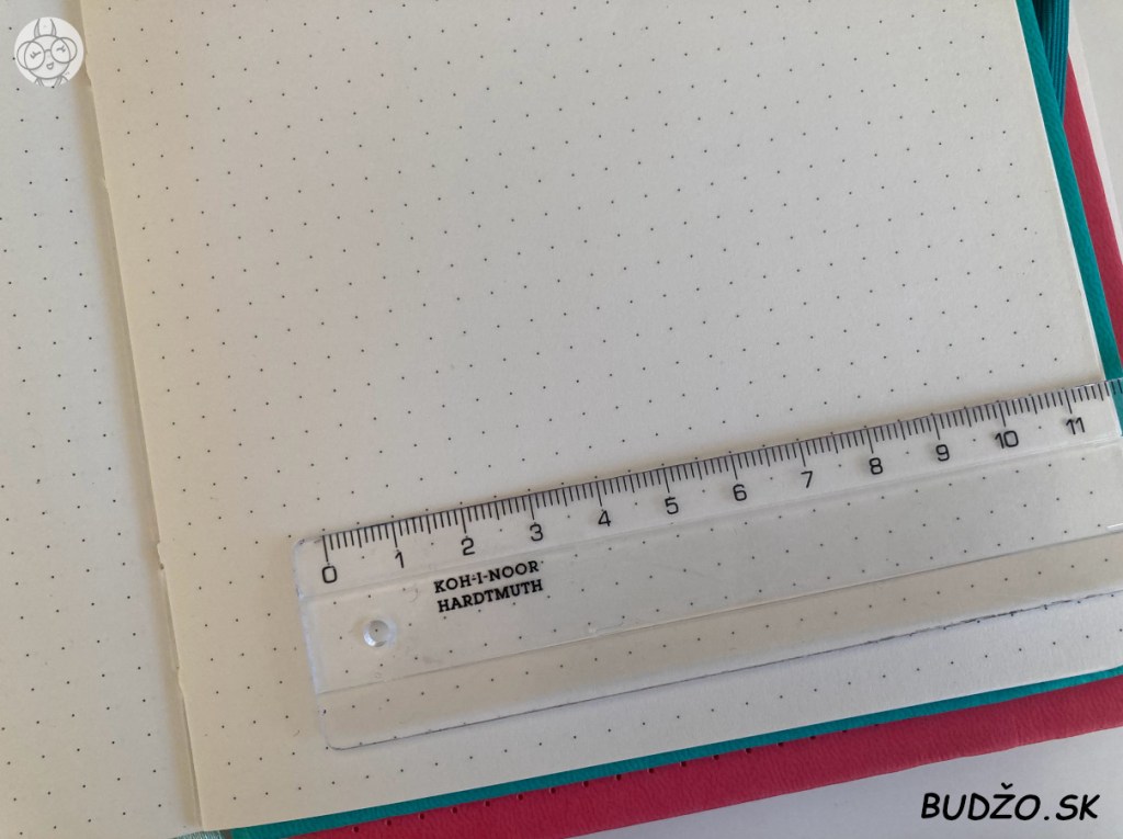 Stránky majú predtlačené bodky v štandardnom rozostupe 5mm a stránky v porovnaní s Leuchtturmom majú o troška svetlejšiu farbu, avšak stále ladenú skôr do teplej bielej, na rozdiel od tej desivej studenej bielej, na ktorú sa potom mnoho ľudí bojí písať. 🙂 Na fotografii vyššie hore vidíte odfotenú stránku Tiger Bullet Journalu.