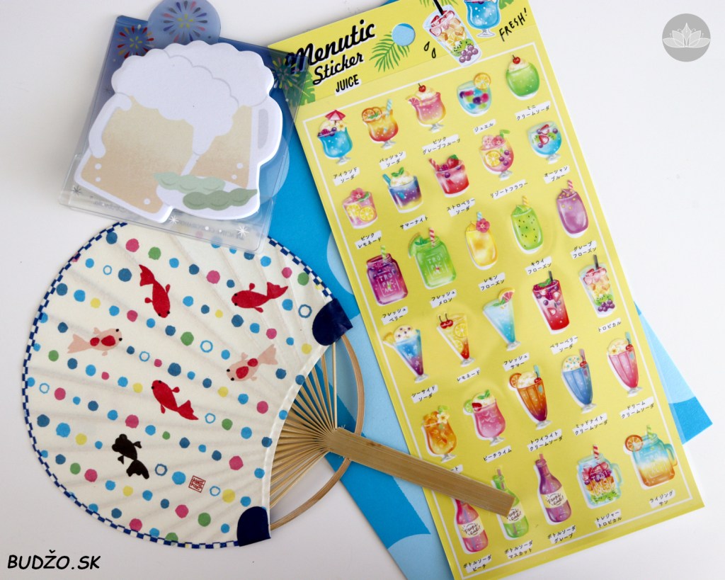Pokiaľ vám predchádzajúce tropické horúčavy nenaviedli pocit leta, s tohtomesačným ZenPop balíčkom sa spomínaný pocit určite dostaví. 😊 Máte pocit, že je vonku neznesiteľne horúco? Môžete to využiť a schladiť sa drobným Uchiwa vejárom s dizajnom zlatých rybičiek “koi”. Alebo ho môžete zabaliť do priloženej modrej obálky a na žltý lístok napísať milý odkaz. Pokiaľ preferujete skôr tekuté chladenie, ZenPop tento mesiac zabalil do krabičky aj samolepky s pestrofarebnými miešanými drinkami a lepiace lístky s motívom piva. Najlepšie na nich je, že sú prilepené o transparentný plastový stojan s dizajnom ohňostrojov a vy si ich môžete postaviť na stolík.