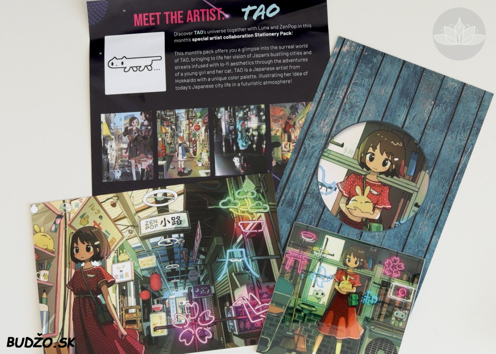 Už to bolo dávno, čo ZenPop naposledy robil spoluprácu s nejakým umelcom. Hoci to vyzeralo tak, že to bude pravidelná súčasť boxu, až tentoraz sme sa dočkali. ZenPop si pre spoluprácu zvolil umelkyňu Tao, ktorá žije v Sapporo (Hokkaido). Tao vo svojich prácach oživuje vlastné predstavy o rušných japonských mestách a uliciach