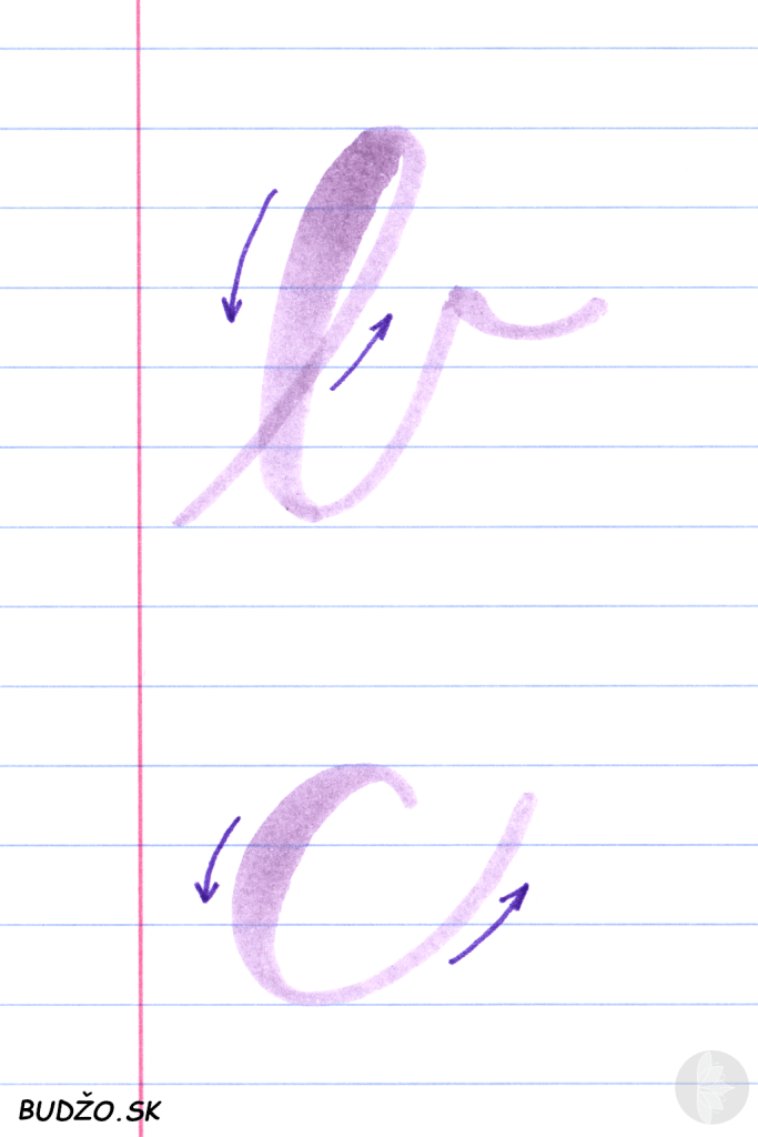 pri ťahu nahor urobíme tenkú čiaru a pri ťahu dole, naopak, zatlačíme na štetec a čiaru urobíme hrubšiu.