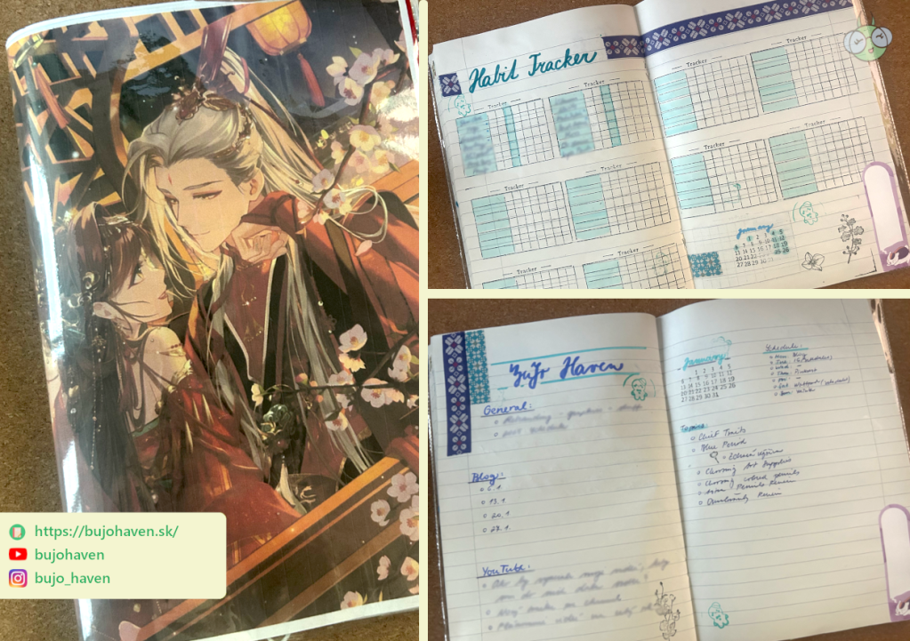 Samozrejme, môj bullet journal napokon skončil ako obyčajný 60-stranový linajkový zošit z recyklovaného tmavého papiera. Starý dizajn na obálke som opravila veľmi jednoducho a rýchlo tak, ako som to robievala už na základnej škole a na strednej: dala som zošit to plastového obalu, aby som nezničila jeho obálku a medzi ňu a obal som vložila vytlačený obrázok podľa svojho gusta. 😊