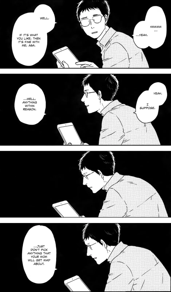 Autorka sa vo svojej sérii venuje nielen Makio a Ase, ale stretnete sa aj s obrovským množstvom postáv. Prostredníctvom ich životov opisuje, aký tlak deti zažívajú, aby splnili očakávania svojich rodičov a ako sú často považované za sklamanie aj napriek tomu, že urobili maximum. Makio sa snaží počas vychovávania Asy prísť na to, ako vlastne funguje rodičovstvo a popritom v kontraste vidíme, čo ako dieťa zažívala ona a jej priatelia zo strany svojich rodičov.